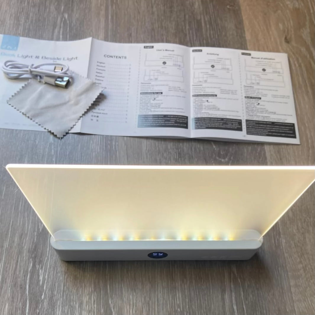 Trzy kolory światła to świetny pomysł! Używam ciepłego wieczorem i zimnego do pracy. Minimalistyczny design pasuje do każdego biurka.